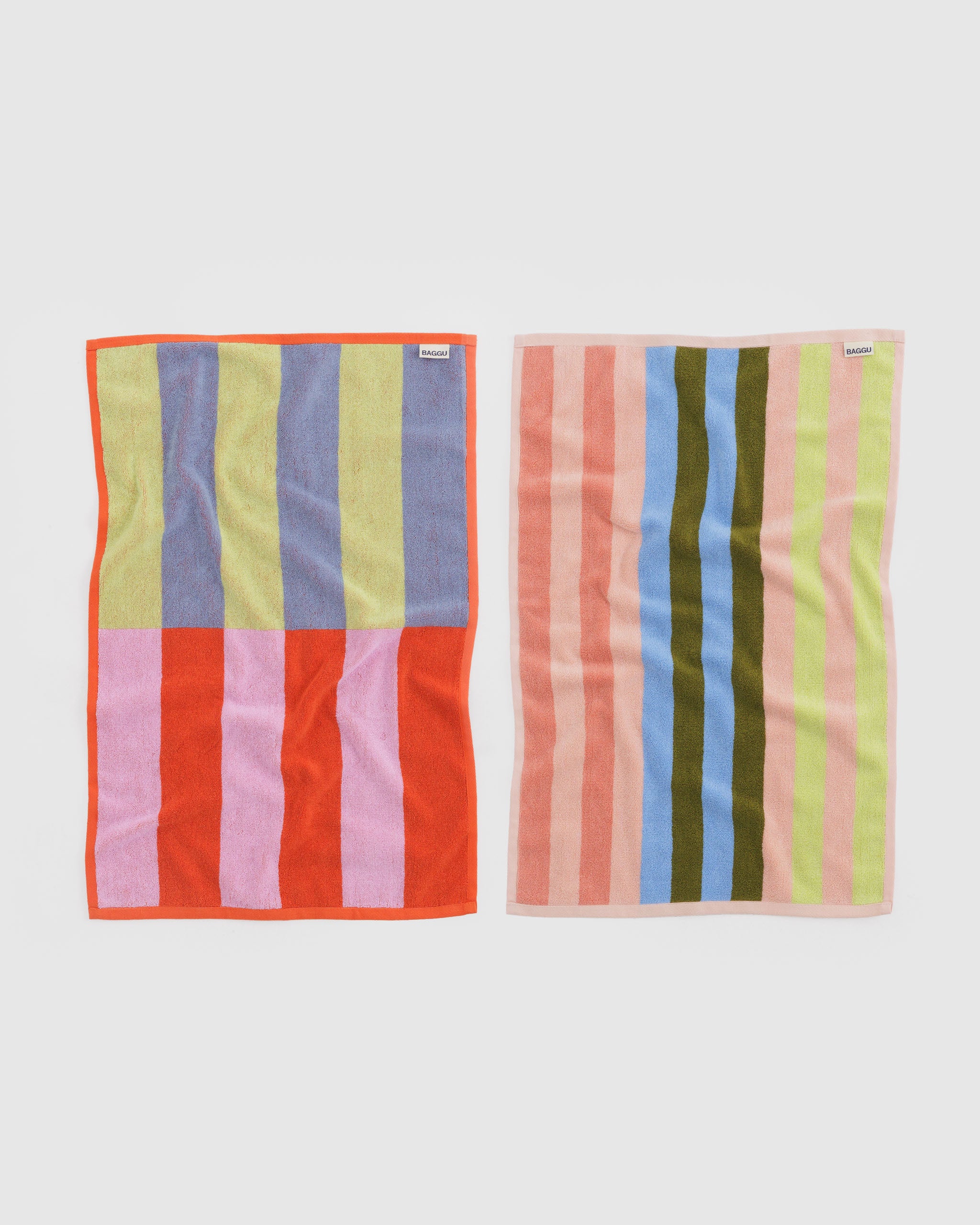 The Pool Stripe Hand Towels by BAGGU are soft, reversible towels perfect for adding some happiness and colour to a bathroom.