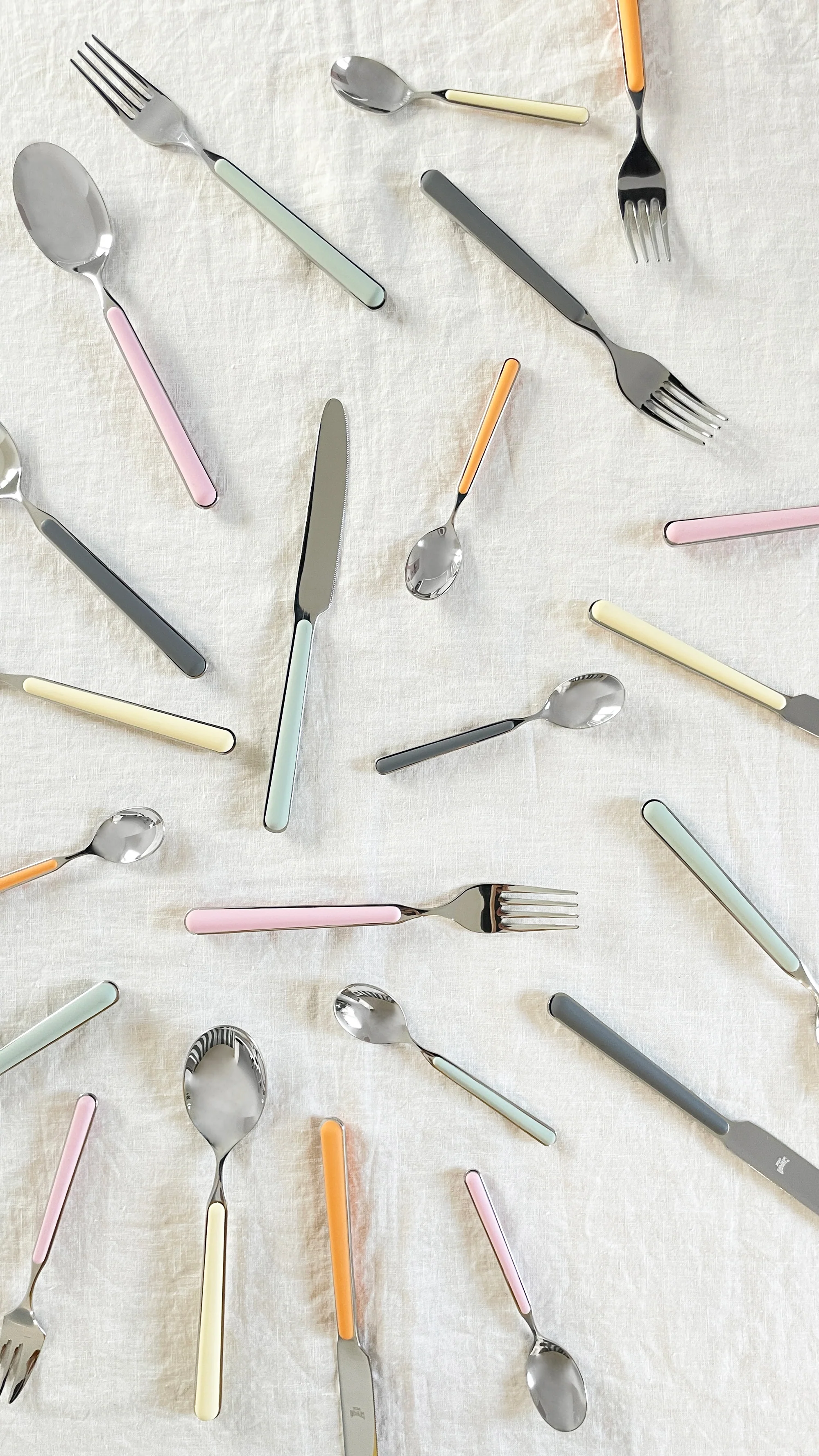 Create a fun dining experience with these stunning Italian-made Fantasia flatware sets by famed design house Mepra. Crafted in thick stainless steel with a matte resin handle, enriched with glass fibres to maximise the colour that won't dull over time, perfect for switching it up on the dinner table. Entertain in style with the Mepra Fantasia range.