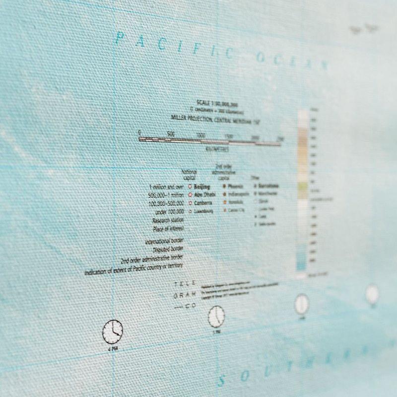 Made with cotton canvas, the map is hand-stitched to bamboo rods and hung by a natural cotton cord. The rich and vibrant artworks are applied to the canvas using eco-friendly water-based latex ink, capturing every colour and detail in perfect clarity.