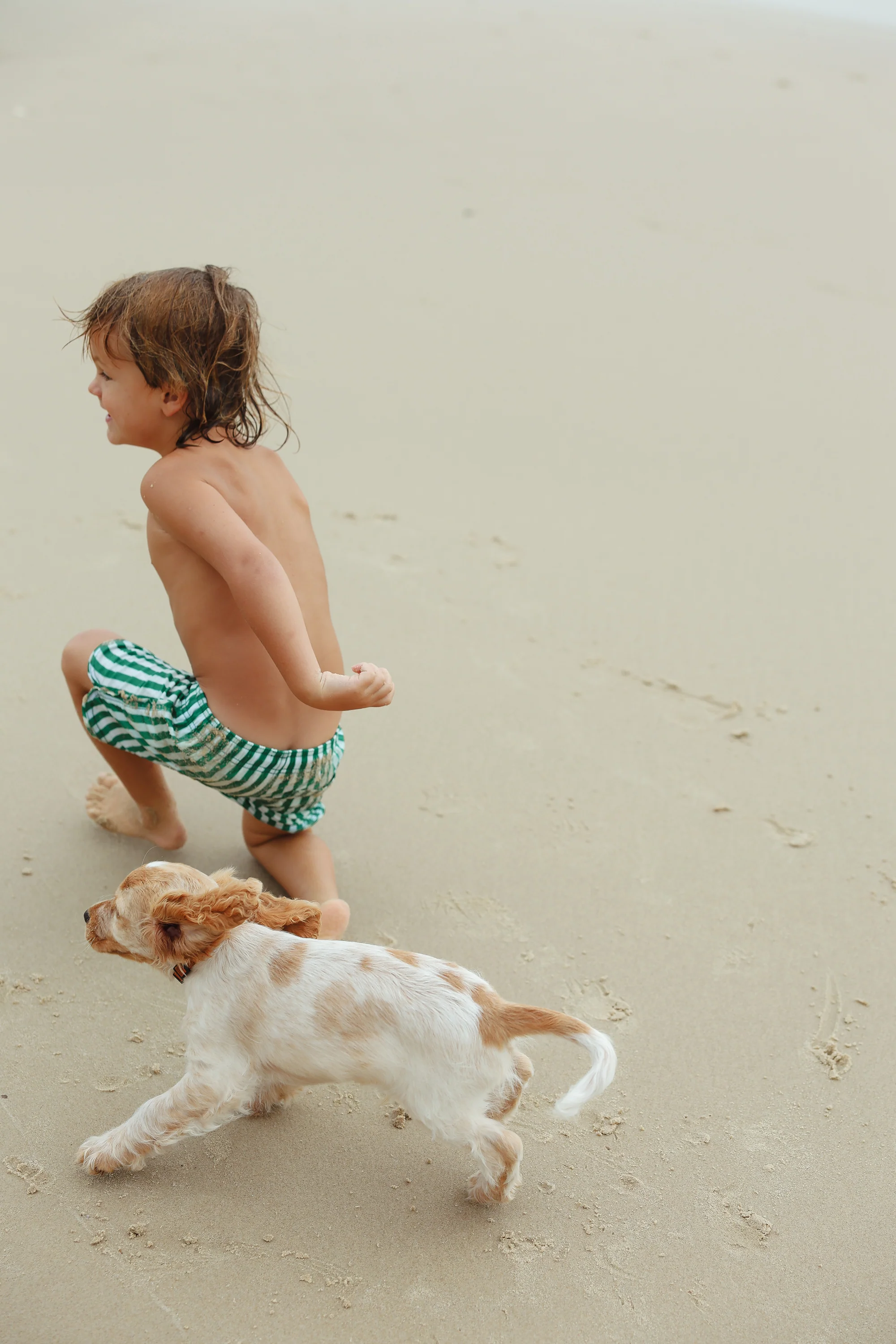 These Stripe Boardshorts in Green by Sonny Label are your mini's ultimate beach & pool companion. Featuring a simple stripe, lining, and an elasticated waistband with a drawstring ensuring a perfect fit.