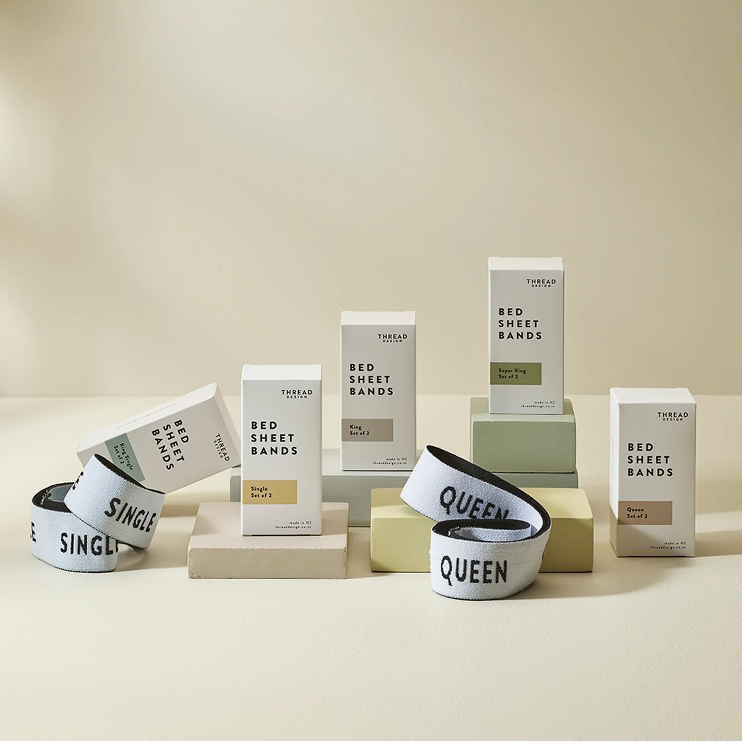 Organise your linen cupboard effortlessly with the clever Bed Sheet Bands by Thread Design. No more unfolding and refolding just to figure out the sizes, these handy elastic bands wrap around your folded sheets and bedding, clearly labelling the size as well as keeping your sets tidy and organised. These bands simplify finding the right bedding in no time.